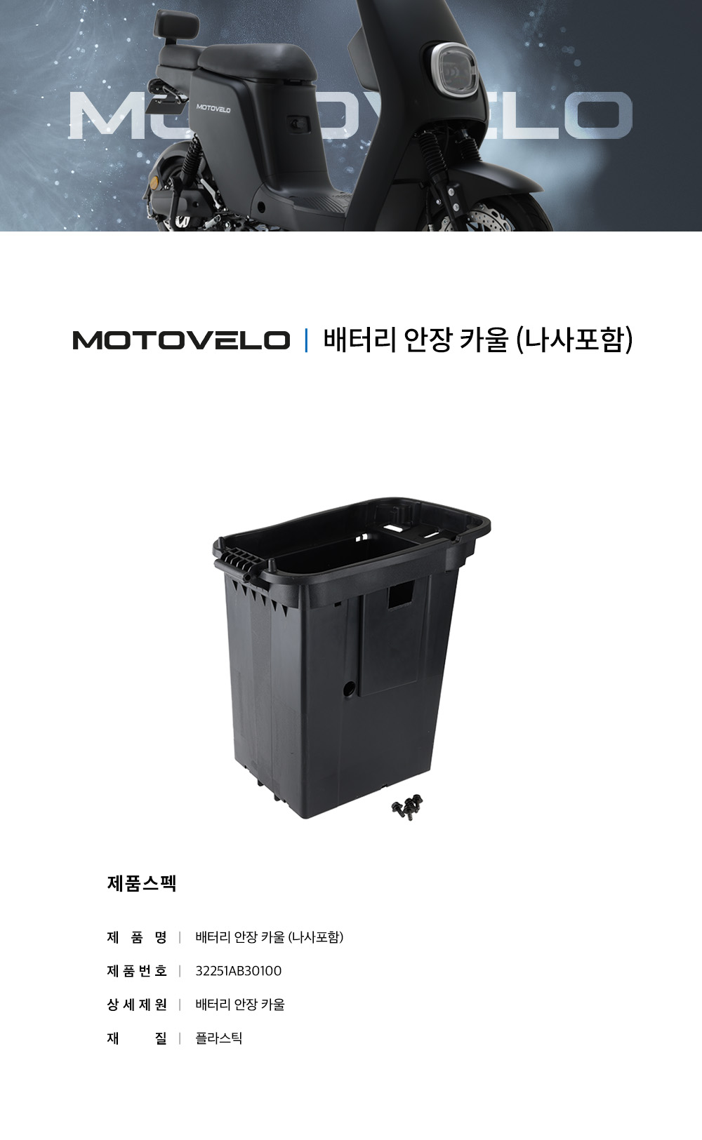 모토벨로 A30 전동스쿠터 배터리 안장 카울 (나사포함)