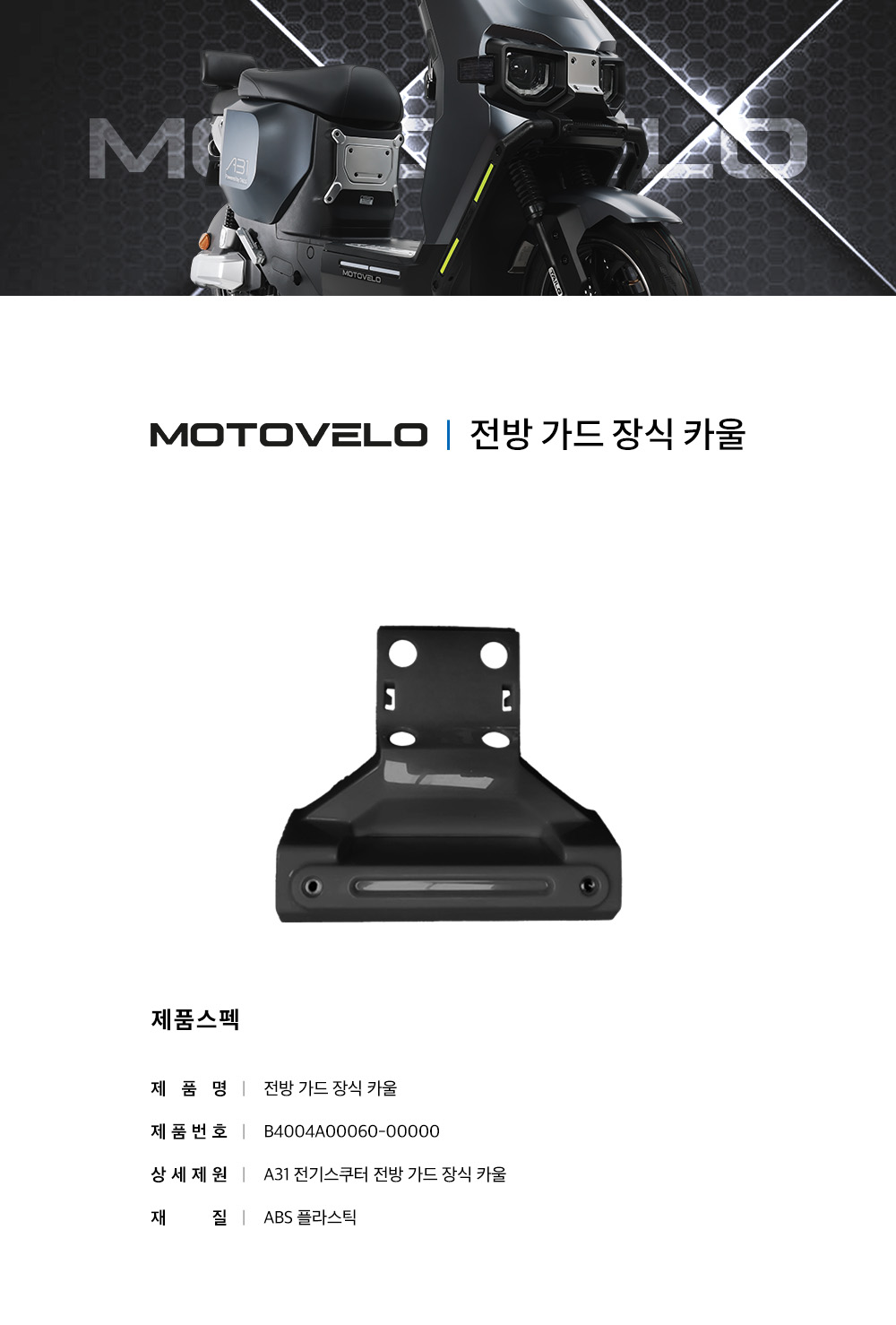 모토벨로 A31 전동스쿠터 전방 가드 장식 카울