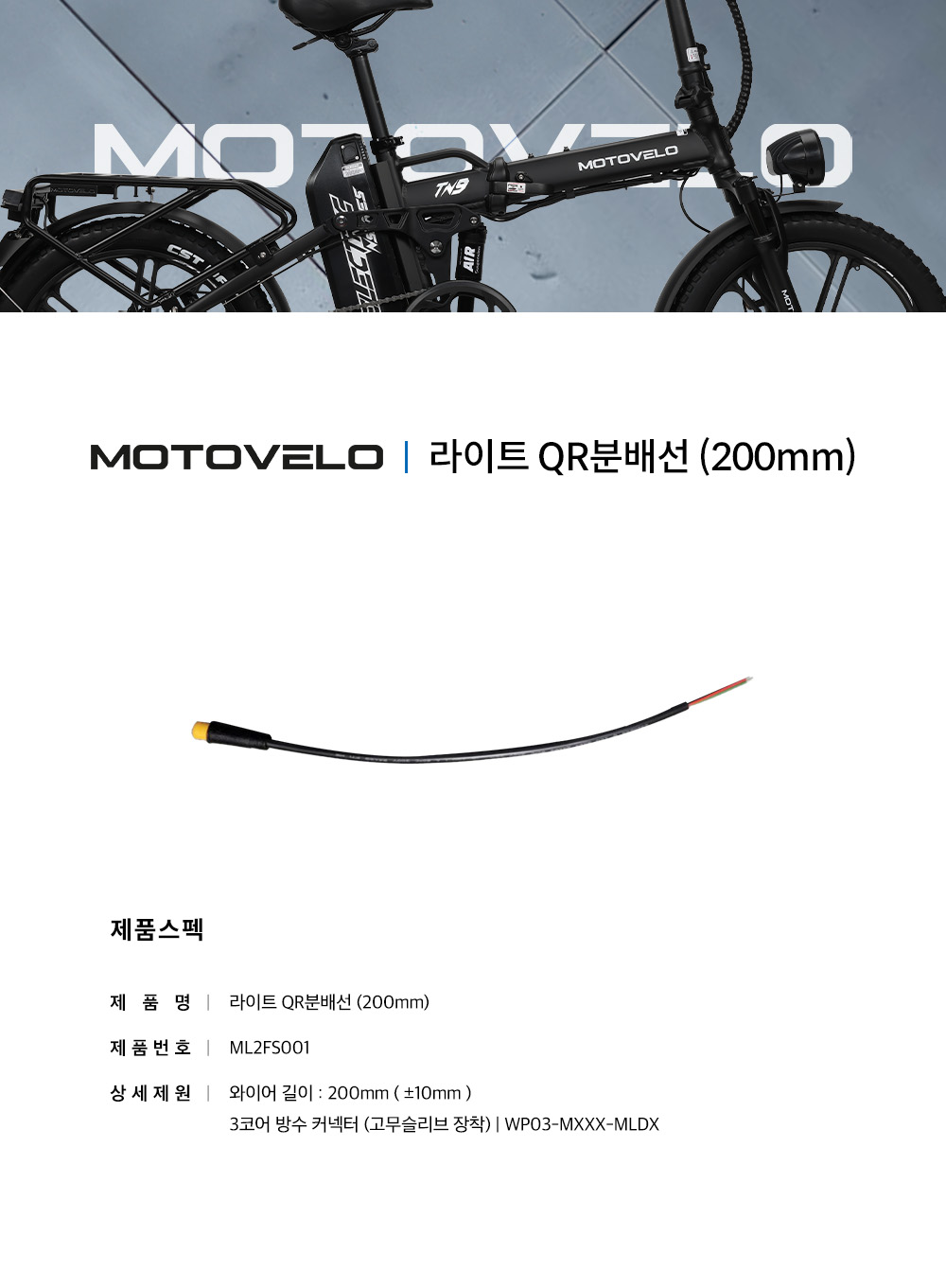 > 모토벨로 TN9 전기자전거 라이트 QR분배선 (200mm)
