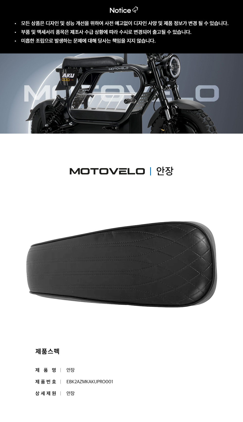 모토벨로 AKU COO 전동스쿠터 안장