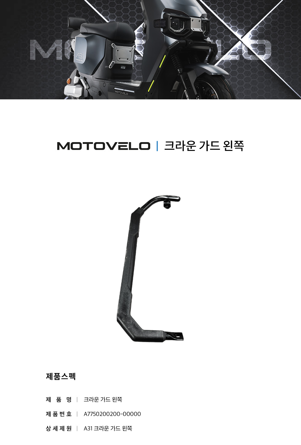 모토벨로 A31 전동스쿠터 크라운 가드 왼쪽