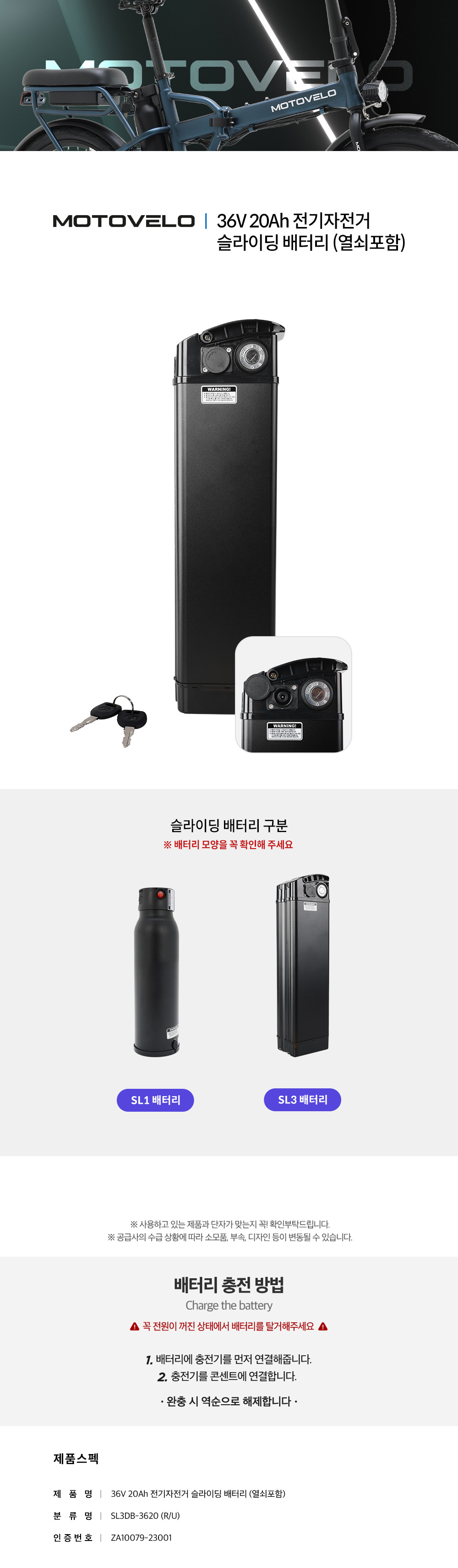 모토벨로 TX7 전기자전거 36V 20Ah 배터리(열쇠포함)