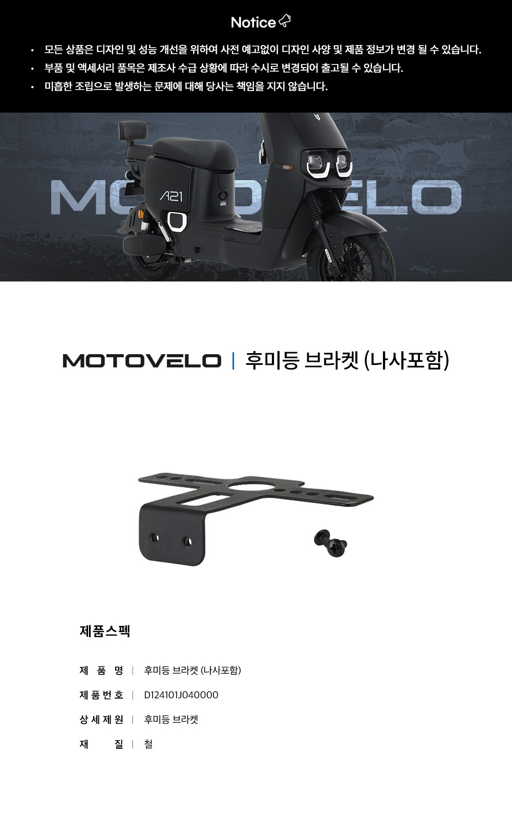 > 모토벨로 A21 전동스쿠터 후미등 브라켓 (나사포함)