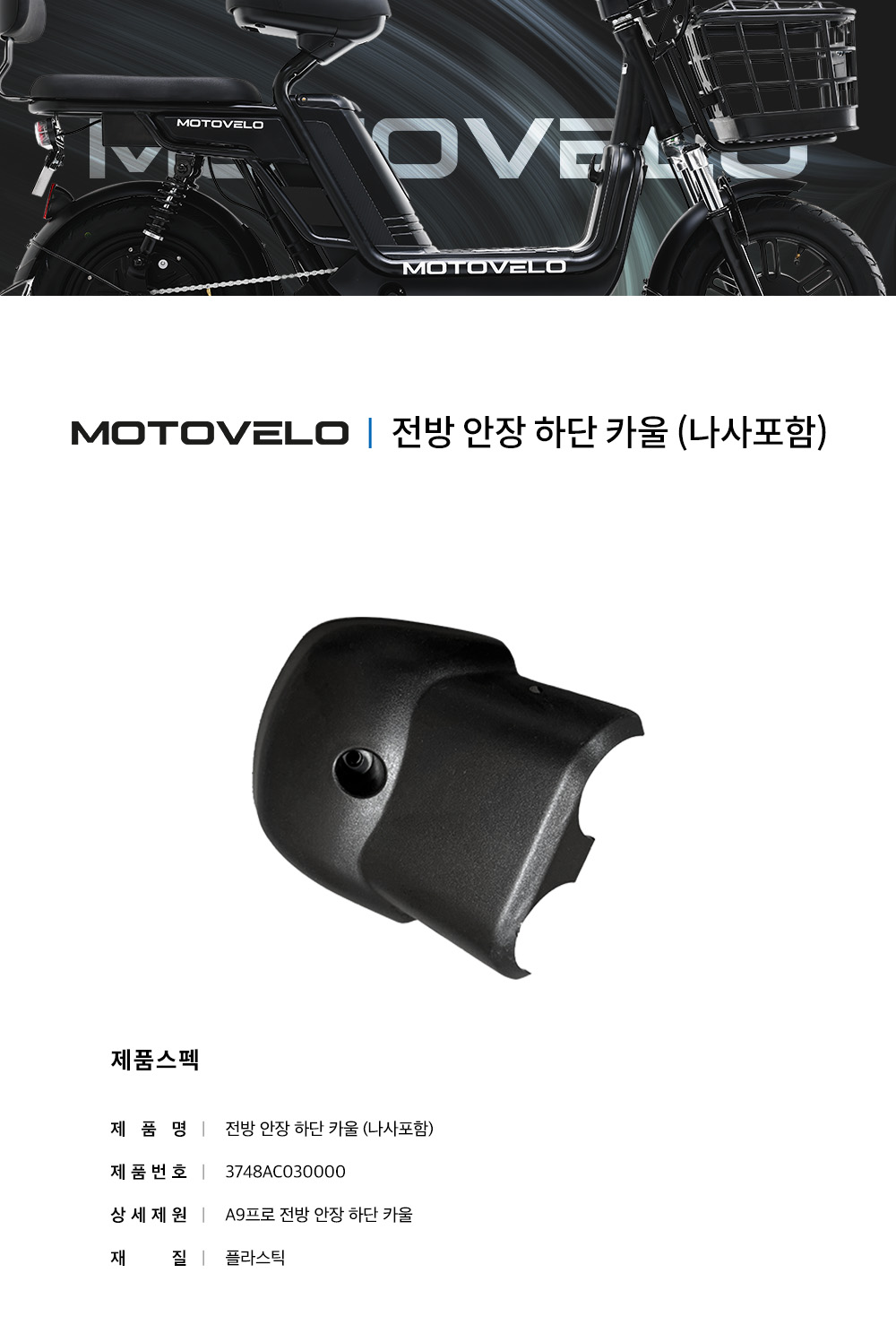 모토벨로 A9 프로 전동스쿠터 전방 안장 하단 카울(나사포함)